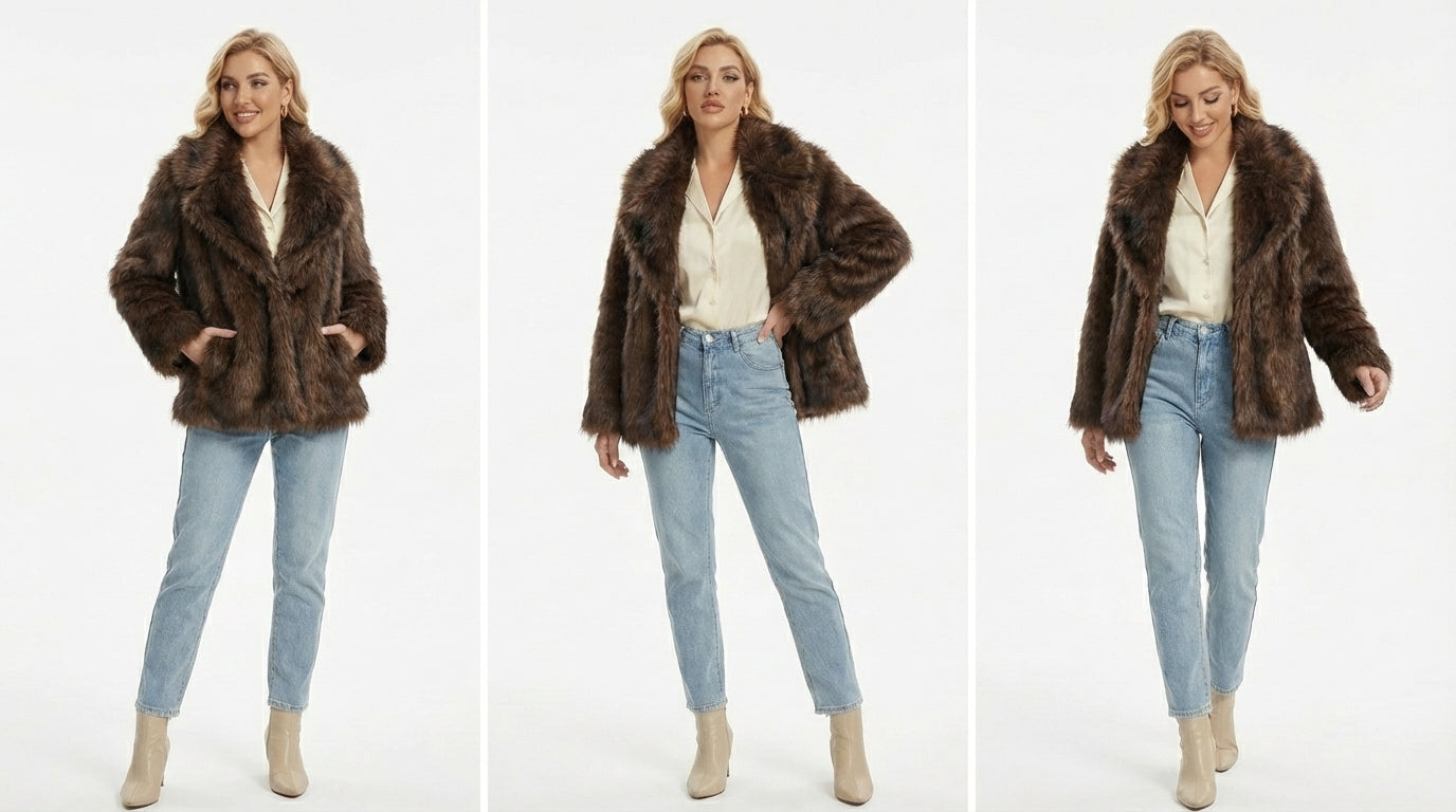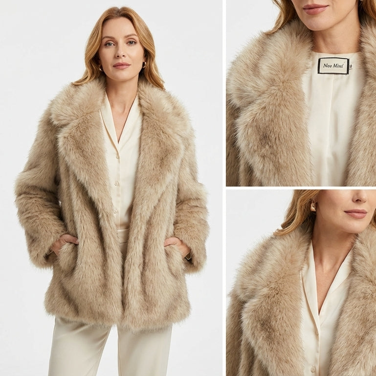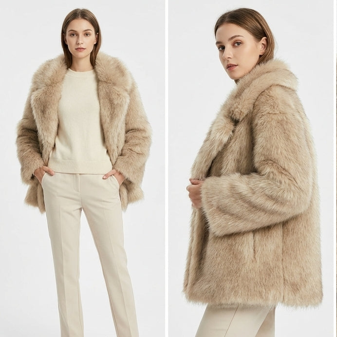 Winterse momenten om te koesteren. Wikkel jezelf in zachtheid en warmte, en stap de wereld in met vertrouwen. Deze imitatie bontjas is meer dan een kledingstuk – het is jouw dagelijkse dosis luxe en comfort.