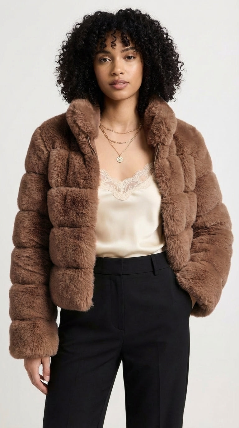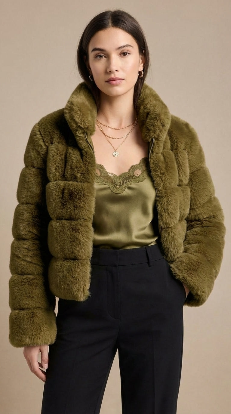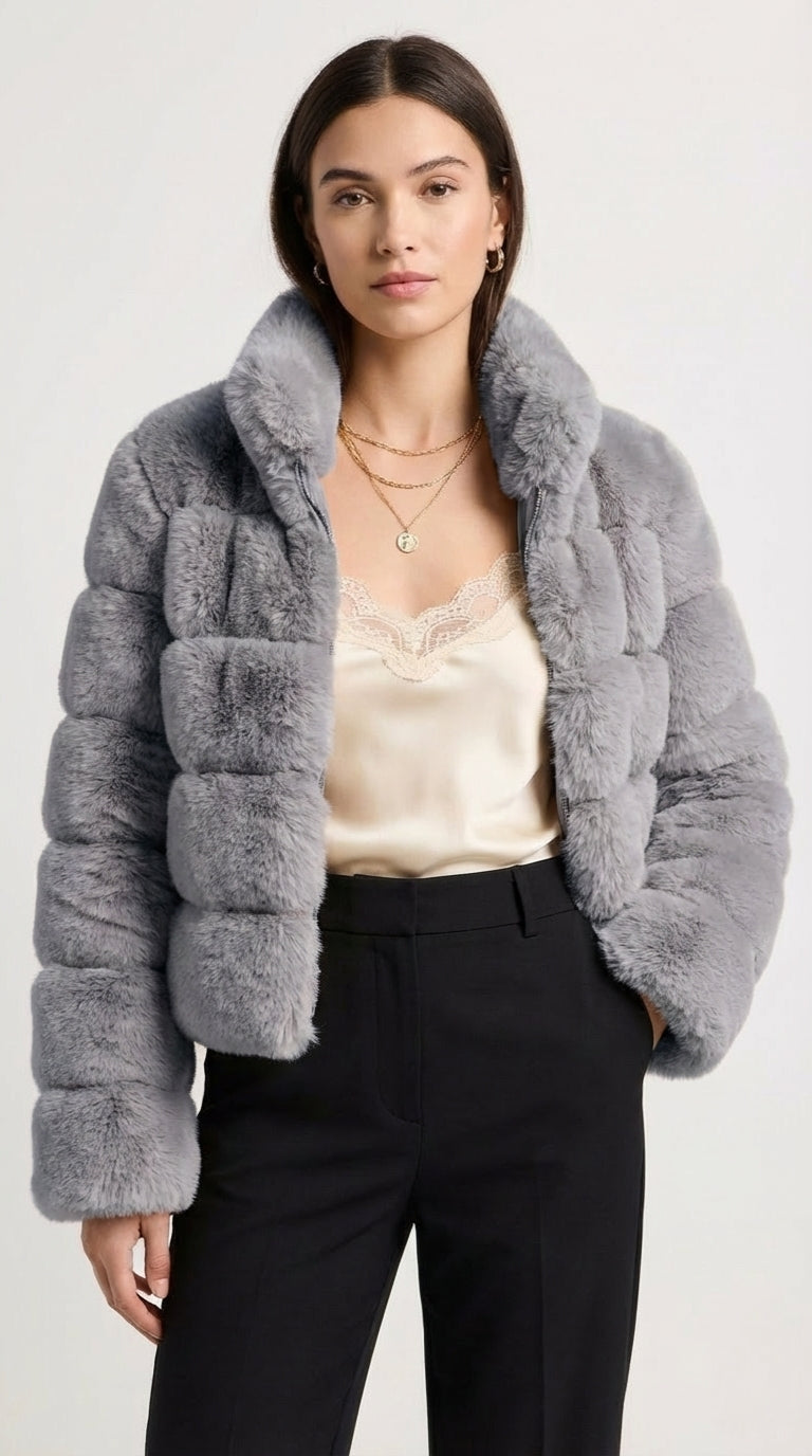 Winterse elegantie, opnieuw gedefinieerd. Deze imitatie bontjas houdt je warm tijdens koude dagen en voegt moeiteloos stijl toe aan elke outfit. Veelzijdig, comfortabel en altijd chic.