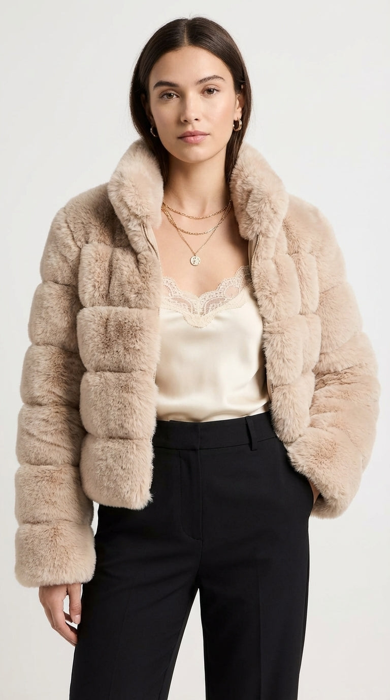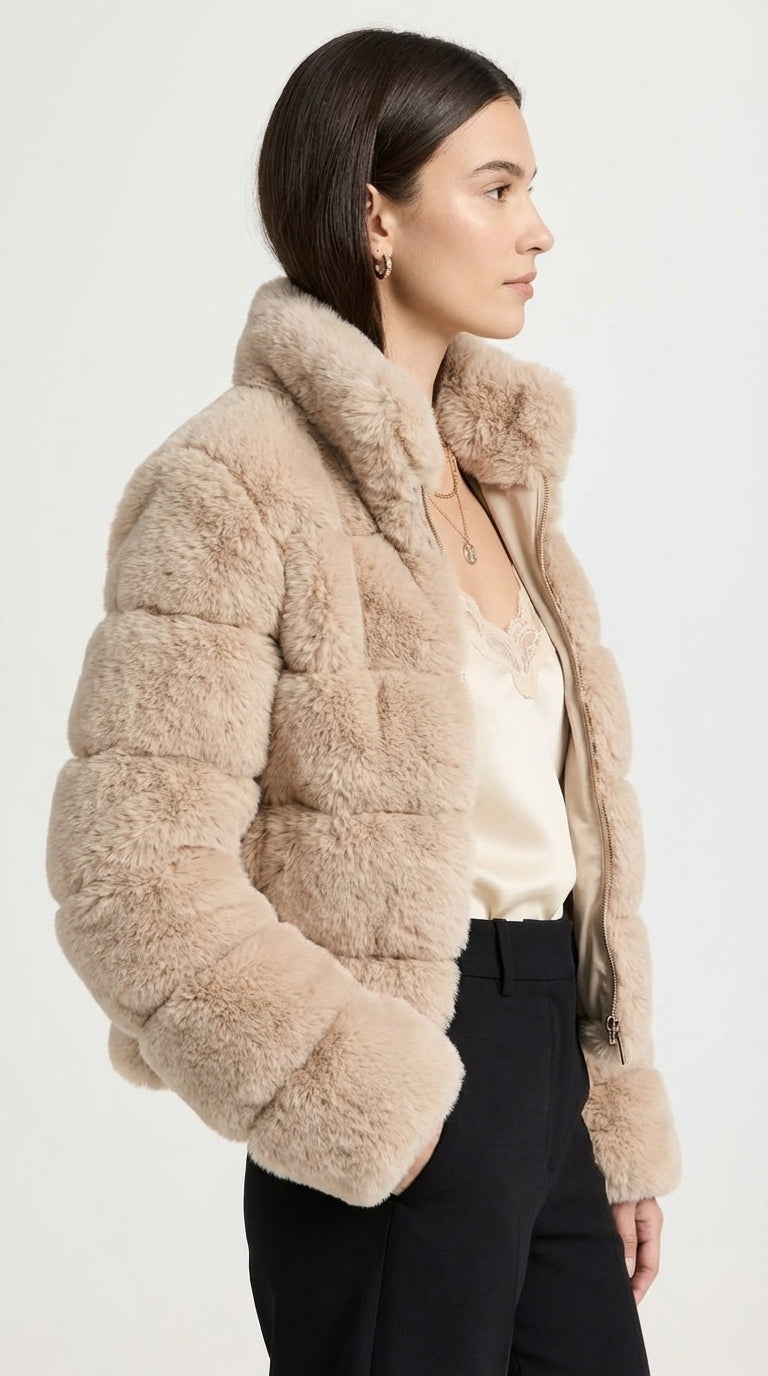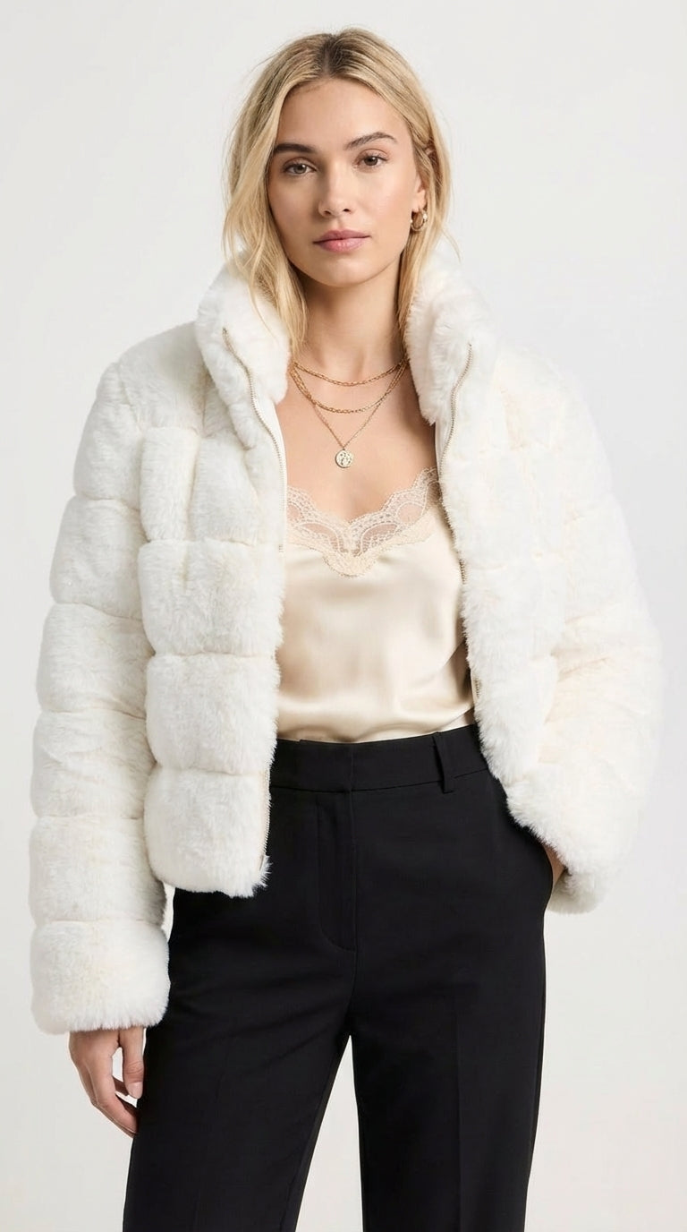 Winterse elegantie, opnieuw gedefinieerd. Deze imitatie bontjas houdt je warm tijdens koude dagen en voegt moeiteloos stijl toe aan elke outfit. Veelzijdig, comfortabel en altijd chic.